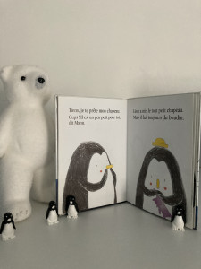 Une vraie histoire mignonne pour aborder toutes ces sentiments un peu compliqués à gérer pour les enfants et aussi à aborder pour les adultes, à l’arrivée d’un bébé à la maison. Pour aborder autrement le thème banquise, une histoire qui n’en parle pas, mais qui offre pleins de détails visuels qui contextualisent les choses pour les enfants : pingouins, igloo, bonnet, écharpe, glace…